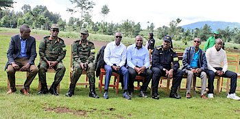 Guverineri w'Intara y'Iburengerazuba Munyantwari Alphonse ari kumwe n'Ubuyobozi bw'inzego z'umutekano mu ntara no mu karere, Ubuyobozi bw'Akarere…