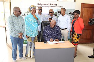 Perezida w'Inteko Ishinga Amategeko mu gihugu cya Sierra Leone Dr Abbass Bundu n'itsinda ayoboye bari kumwe na Hn Ndangiza Madina na Hn Bugingo aho bakiriwe n'Umuyobozi w'Akarere wungirije ushinzwe imibereho myiza y'abaturage Uwampayizina Marie Grace ari kumwe n'Ubuyobozi bw'inzego z'umutekano mu karere basuye Umupaka muto ndetse n'umupaka munini La Corniche banyurwa n’iyoshya ry’urujya n’uruza rw’abantu n’ibintu ku mpande zombi.